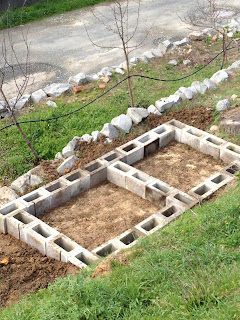 A few months ago I repinned a friend's cinder block garden pin on the wonderful Pinterest site. Since the house we are renting right now has three huge stacks of extra cinder blocks this was the perfect solution and cheapest way for Ross and I to create a garden.